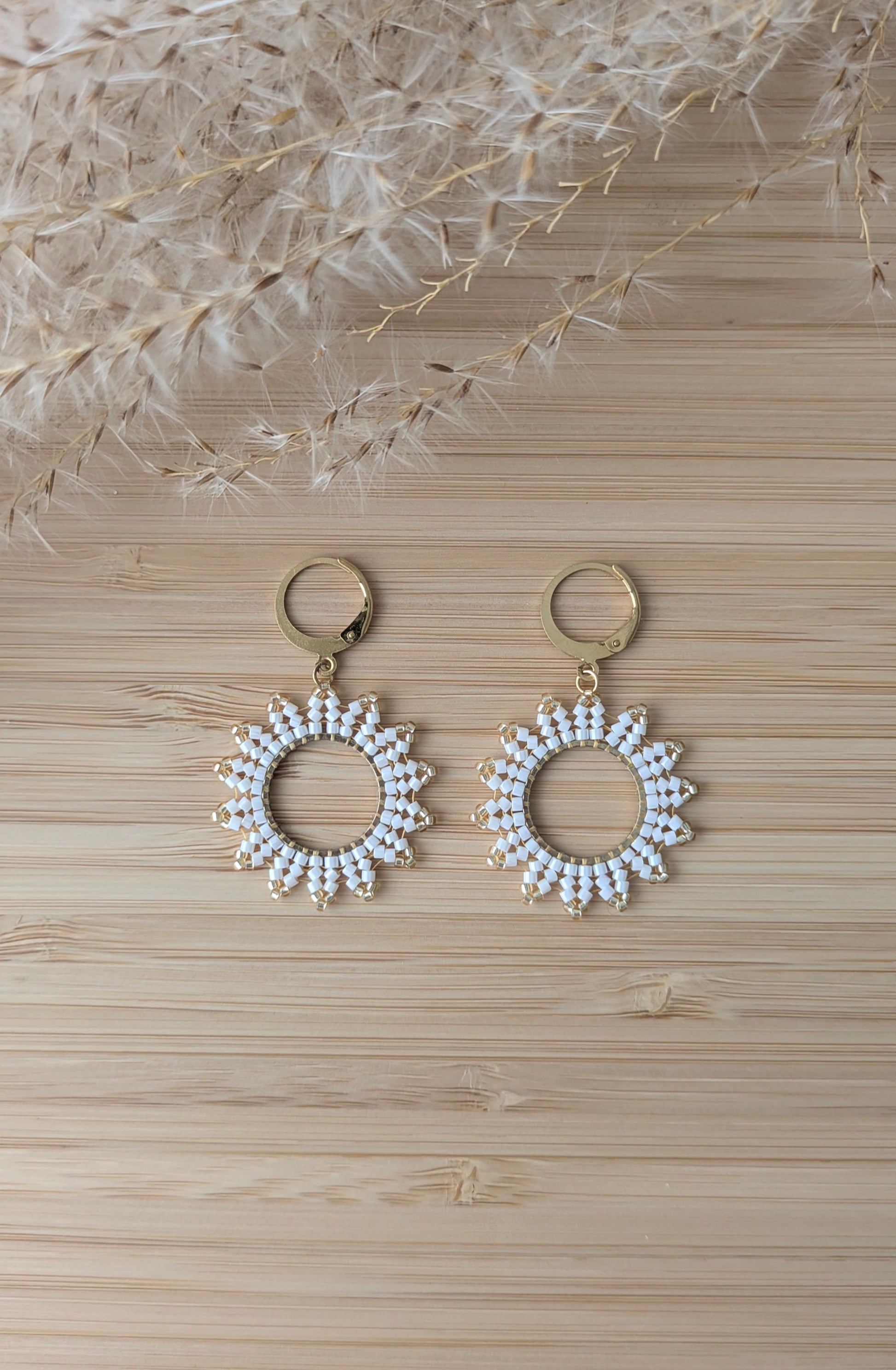 Illuminez votre quotidien avec ces délicates boucles d'oreilles pendantes, réalisées entièrement à la main avec soin et passion. Inspirées par la douceur du soleil, elles apporteront une touche de lumière et d'élégance à toutes vos tenues.