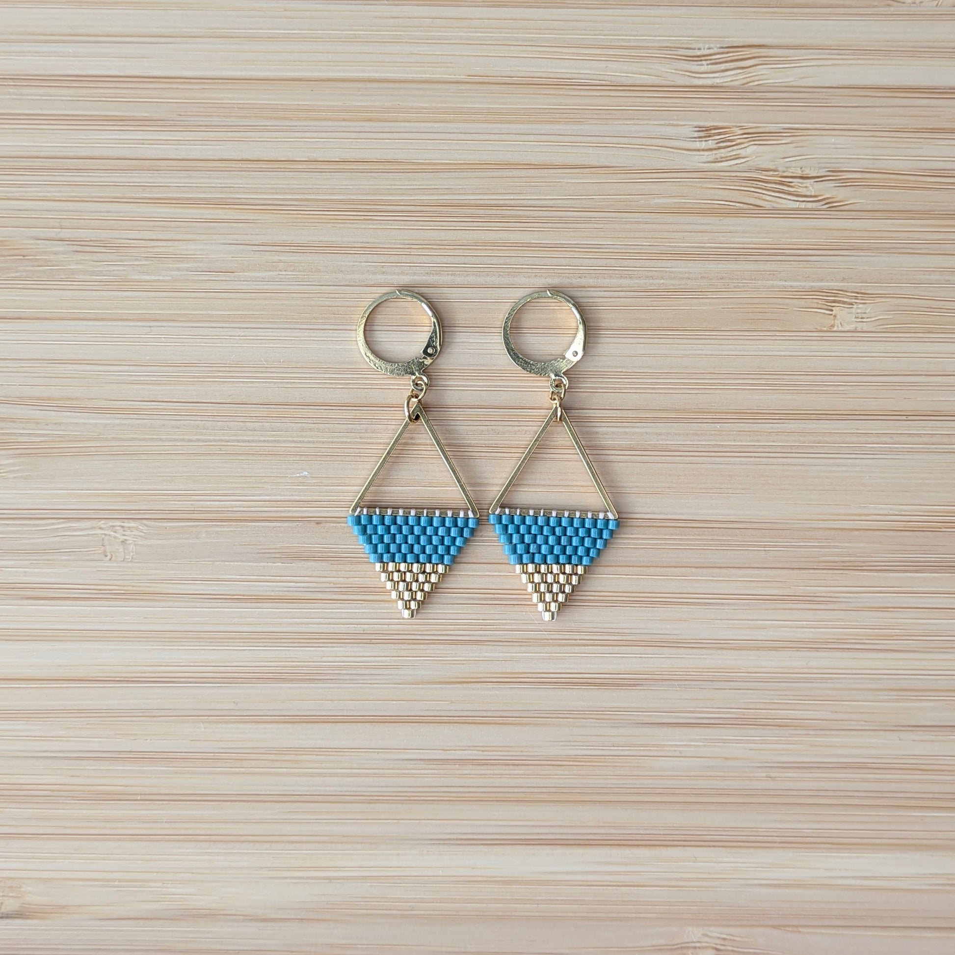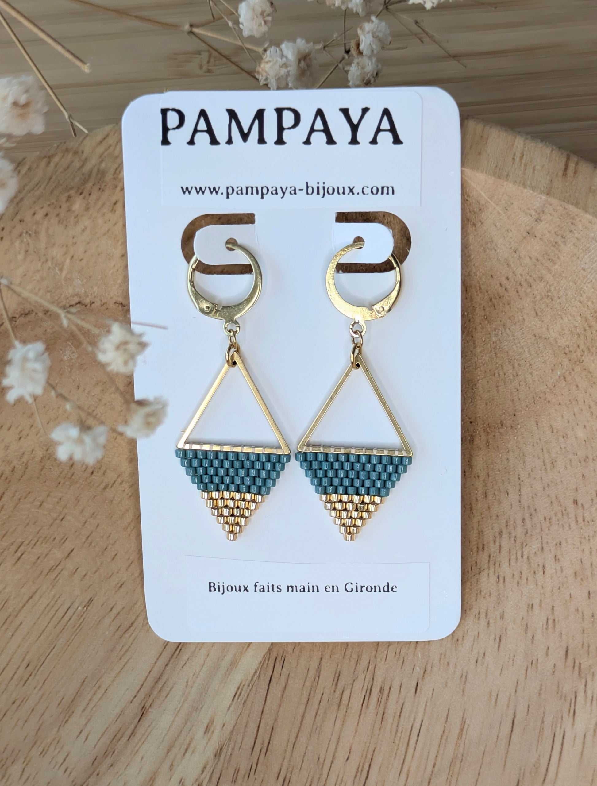 Boucles d'Oreilles Triangle - Bleu vert et doré
